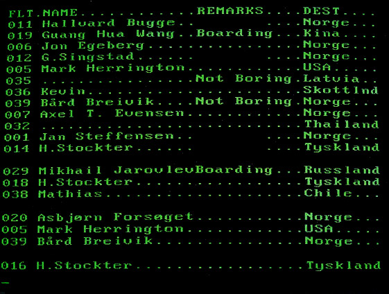 Berven plays afresh on the post modern, by utilising the expressive ability of the differences. In Flight/Escape it is not an established artwork the installation is in dialogue with, but airport convention. Standing in a corner is a video screen ona stand, on the screen we find – exactly the same as on all airport screens – a series of information organised into four categories: flight, name, remarks and destination. In the first category there is a series of numbers – 011, 019, 006, etc. In the second many corresponding names – Hallvard Bugge, Guang Hua Wang, Jon Egeberg, etc. In the third only a few pieces of information such as, Boarding, Not boring, etc. Lastly comes nationality – Norway, China, Norway, etc. In front of the screen are forty paper planes mounted on swaying stems of different heights. They are imaginatively folded or cut from standard A-4 paper by the people listed on the screen, who come from all corners of the earth. The space before the screen is filled by these bobbing paper planes – they are reminiscent of a swarm of bees flying around the cube. The title Flight/Escape has a double meaning – it can mean to fly away, run away, depart from something unpleasant, or just from the many everyday trivialities. But it can also indicate a positive quality, as when we remark on a novel, a poem, a lecture, that “it has been very influential”. Then we think about wide horizons, extensive perspectives and an immense potential of meaning. At the same time, the difference between the screen and the plane alludes to the logistic which regulates the relative reciprocity of the plane - between plane and airport, and between plane and passengers. Making what may appear as a chaotic swarm, not so accidental as it may seem.